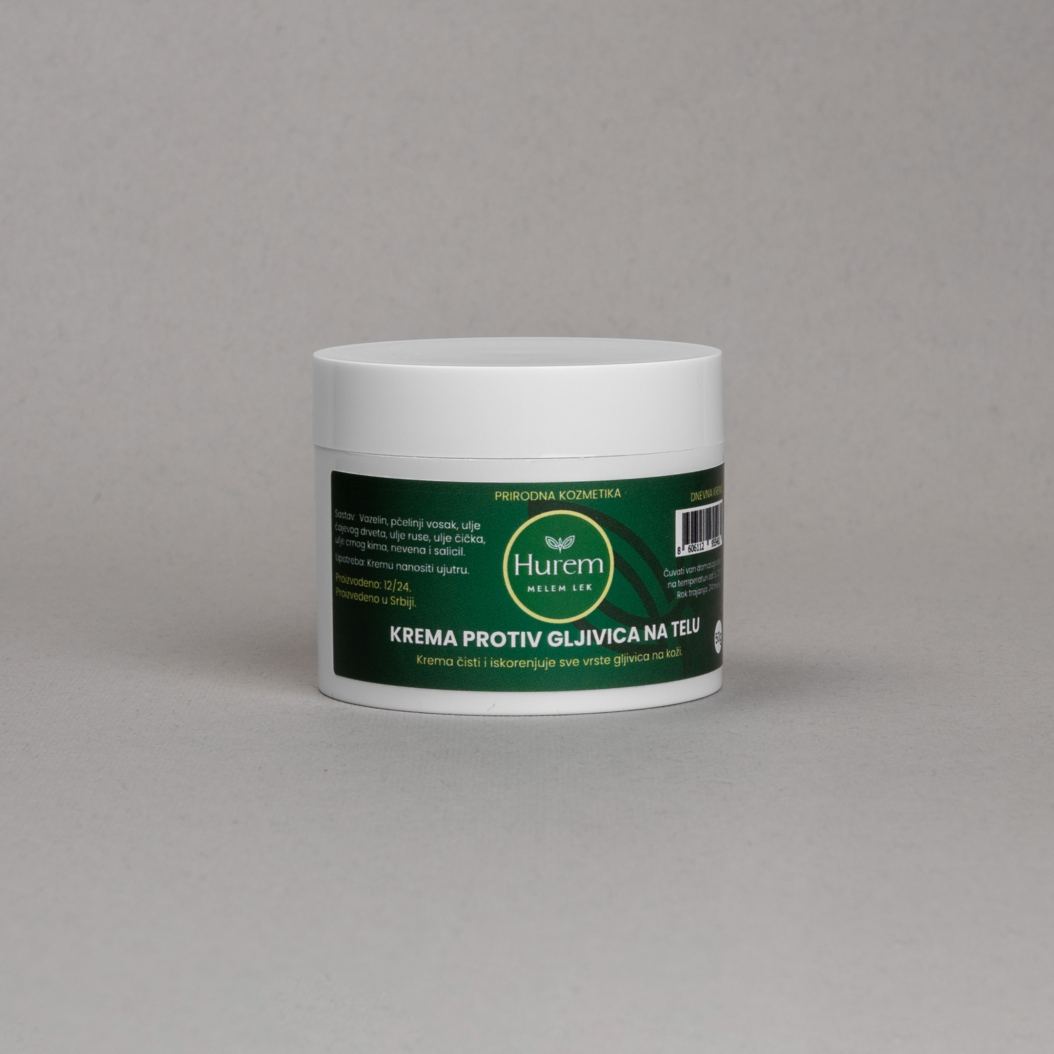 Upotreba: Kremu nanositi ujutru. Sastav:Baza Vazelin, pčelinji vosak, ulje čajevog drveta, ulje ruse, ulje čička, ulje crnog kima, nevena i salicil.